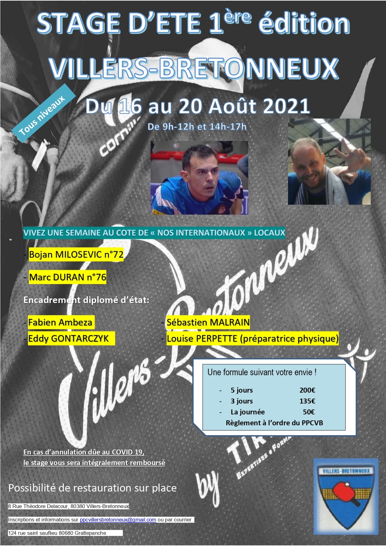 Pour des raisons liées une fois de plus au COVID , le club a décidé d'annuler ce stage , car nous ne sommes pas certains que les joueurs en provenance de l'etanger soient autorisés à venir sur le territoire Français à cette période!